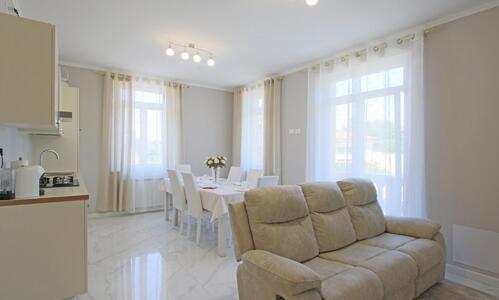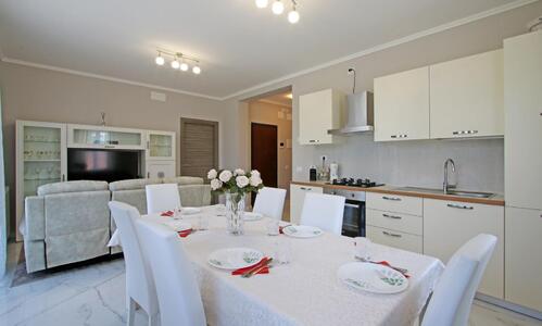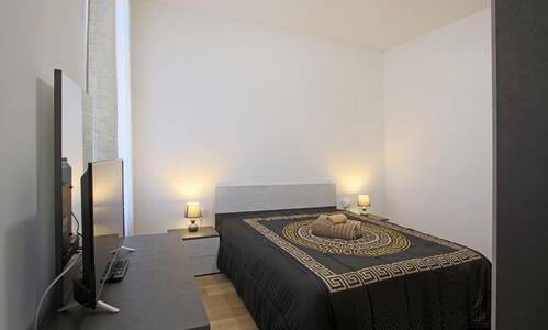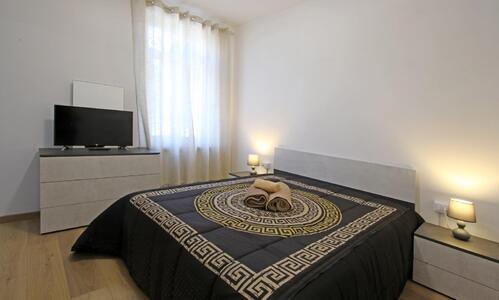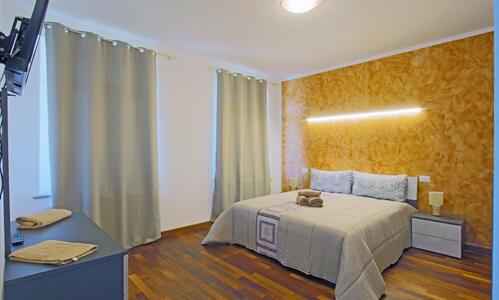 Bicamere al secondo piano, con due camere matrimoniali, ampio soggiorno con angolo cottura e balcone a partire da 110 €/notte.