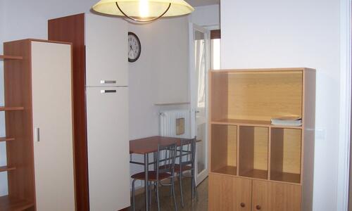 UDINE ZONA OSPEDALE in un condominio anni ’60 ben mantenuto e con esposizione interna non fronte strada, proponiamo in vendita un accogliente miniappartamento completamente arredato al primo piano composta da: ingresso che conduce al soggiorno open space, visivamente separato dalla cucina da una parete divisoria, dalla cucina si accede alla veranda, ideale come lavanderia, un comodo disimpegno, con spazio per armadiatura, camera matrimoniale e bagno con vasca. L’immobile è completo di cantina.